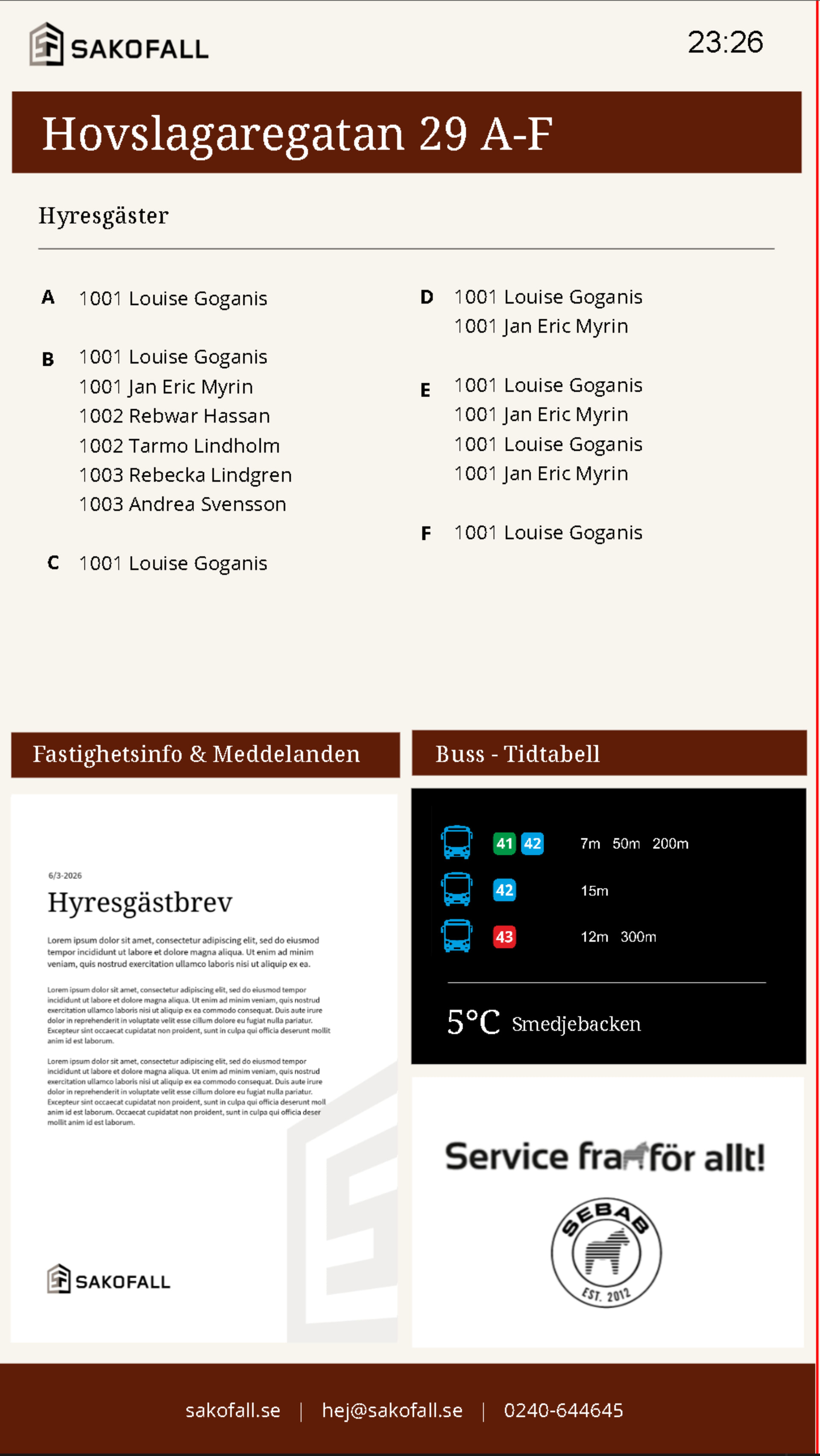We will collect flat and tenants from the rental program platform API and populate screens for about 50 buildings for start.