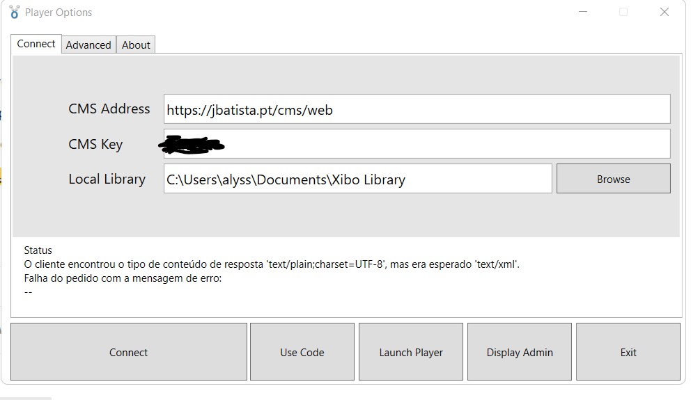 O sistema do player com o cms funciona em local host, porem quando upei os arquivos pra meu servidor de hospedagem, o player da essa menssagem de erro. em anexo tem duas fotos em situações diferentes, primeiro CMS address HTTP:// e outro HTTPS://