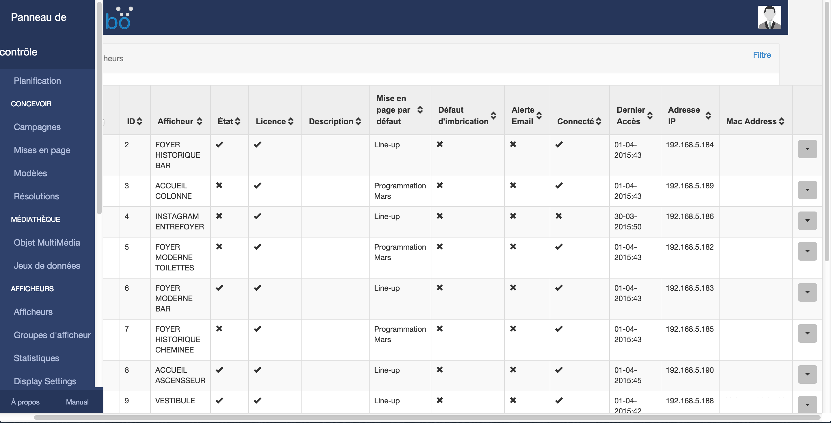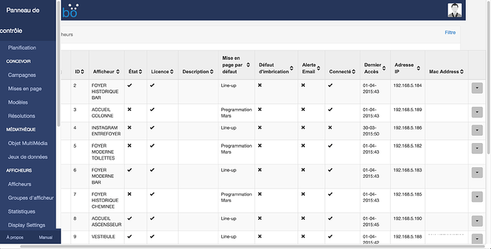 Like in “displays” page. Table is too large and doesn’t fit in the entire page. Maybe there is too much information ? changing layout settings (font size, padding etc…) may do the trick. Or maybe remove one or two columns ?