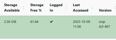 You can check this by going to the Displays page in your CMS, then click the Column Visibility button and choose Storage Available. Can you show me what that column says for your Tizen player?