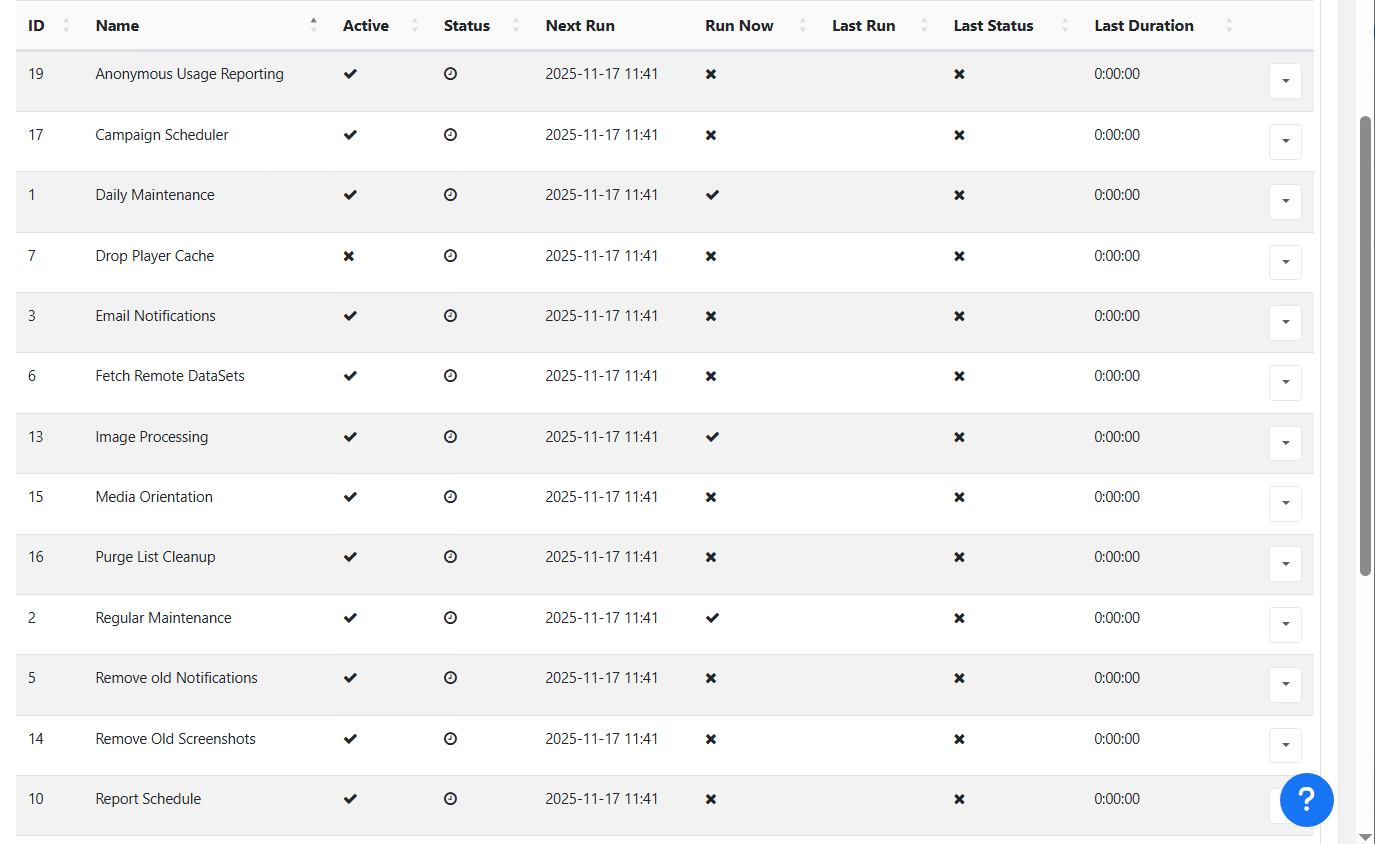 I can manually create any playlist I like with a timeline, no problem with adding Displays and having them get their assigned layouts, etc (No collect now, since XMR doesn’t work either) so the CMS isn’t totally broken, but I’ve run out of places to look for hints.
