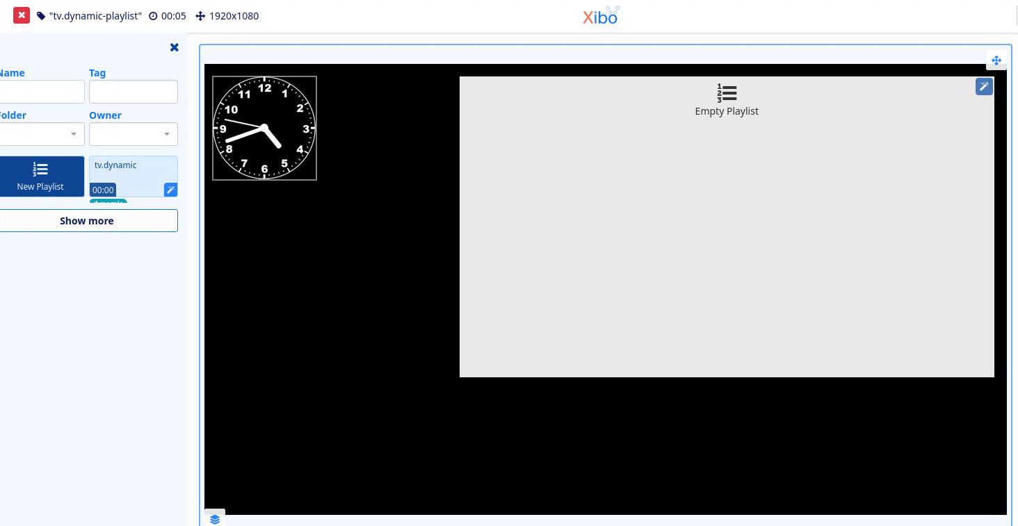I created new DYNAMIC playlist as user, added 4 images to that playlist, created new layout and set in that layout DYNAMIC playlist module. I could not publish layout with only DYNAMIC playlist module so added clock, still can not publish this layout with DYNAMIC playlist.