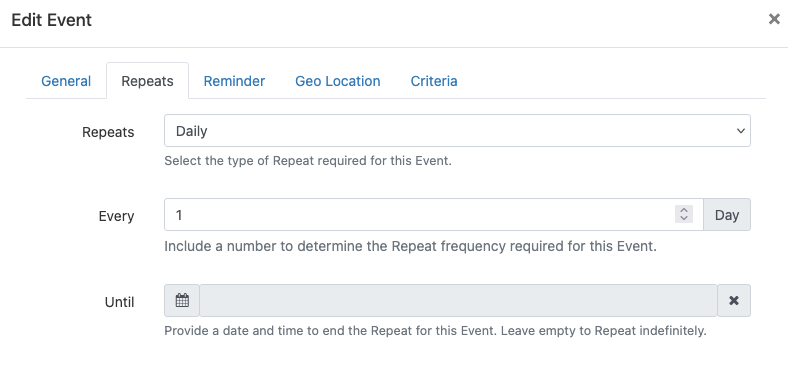 My concern is about this screenshot, which shows a date in the end field - since this is recurring, the end date should be empty, right?