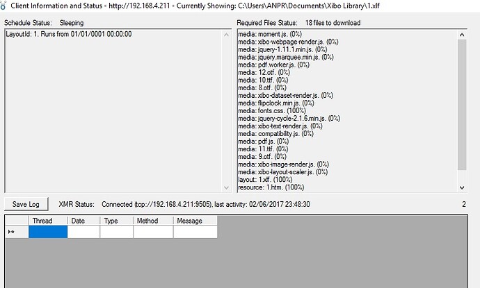 Two Windows clients, one on the same machine one on a different machine. Both connect successfully to CMS but display a blank screen instead of the standard Xibo Default.