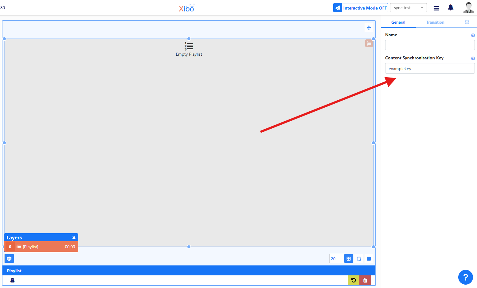 Again if the layouts contain multiple images / videos in a playlist, a Content Synchronisation Key should be entered on the playlist in each Layout: