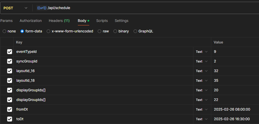 Select the âSync Groupâ that you wish to show the event on, then select the corresponding Layouts for each display, for example:
