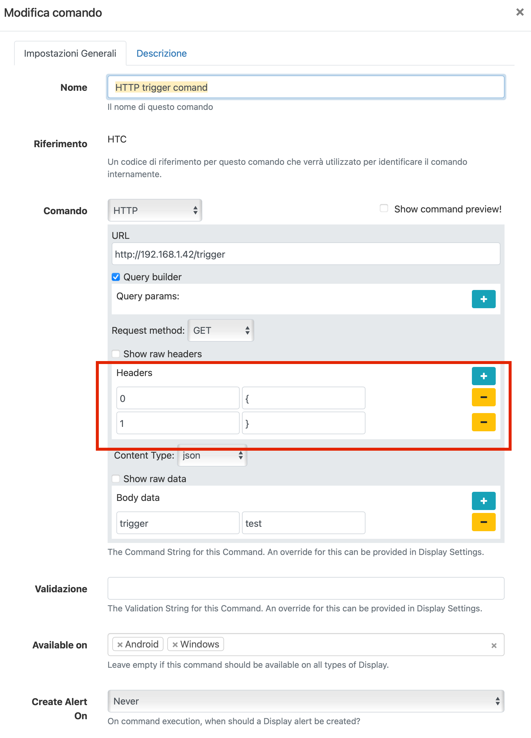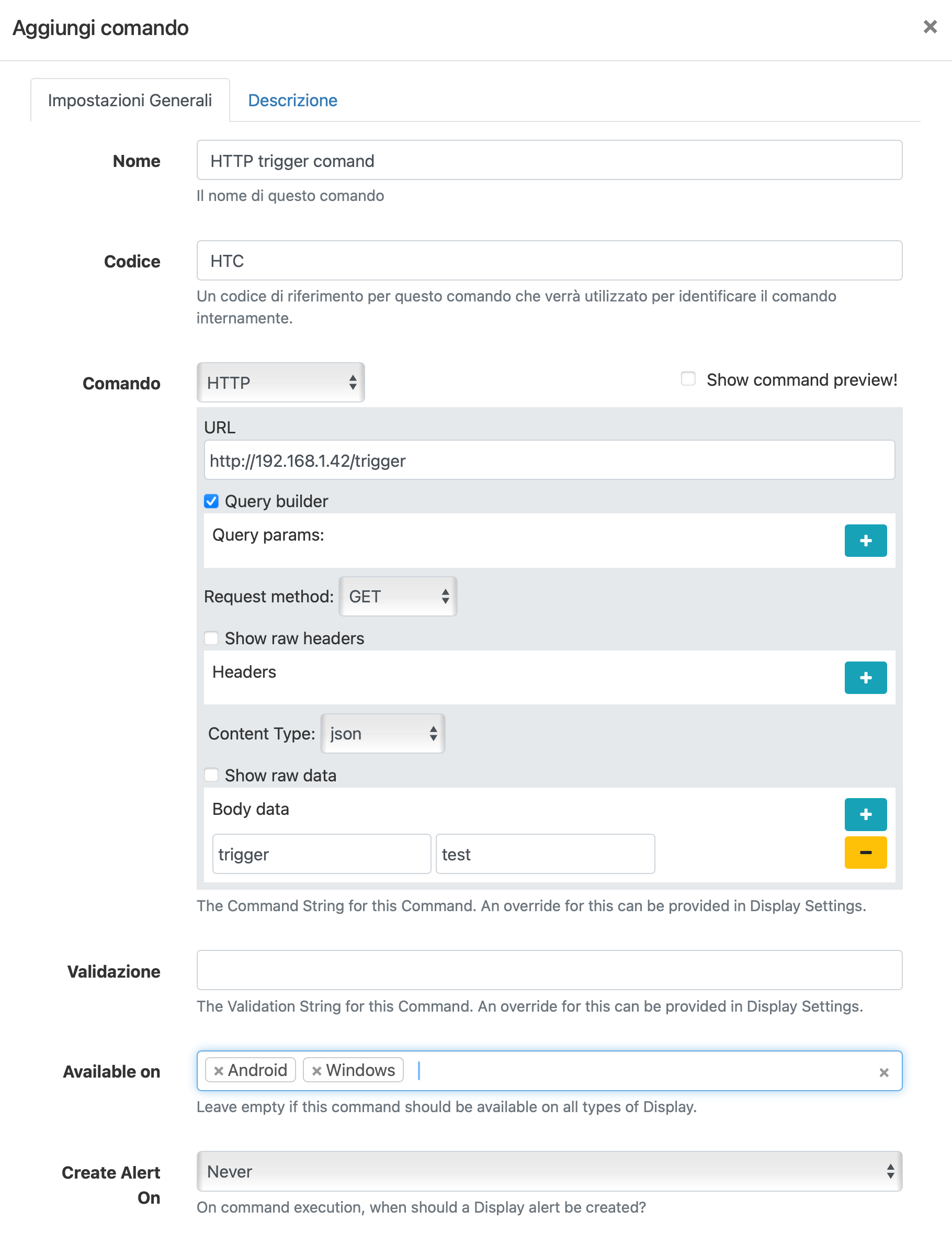 At the beginning I can think it’s fine: could be some staff added automatically by Xibo to make it works. But if I save the command and push Edit again it appear like this: