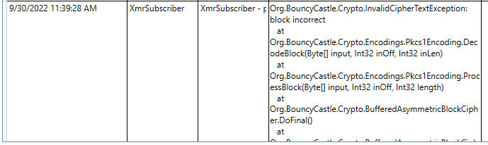 I did a test and change the schedule a few times and it had updated within 6 seconds and that is great, but I did a reboot of the player (Using send commands) and then it just stopped talking completely and I am getting an error “InvalidCipherTextException” (image below)