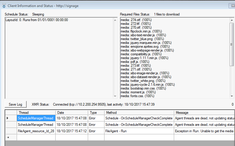 Surprisingly the layout has chosen to run this morning, but the status page still shows 1 file to download. How would I tell which file it is? The status screen shows resource 28 at 0% but I can’t see what resource 28 is, the library on the server doesn’t have a media item with an ID of 28. I have checked the local library and as far as I can tell everything is there. Background is there, all 3 tickers have a html file, both videos are there the clock has a flash object and a html the only other bit the layout plays is a webpage from our local intranet.