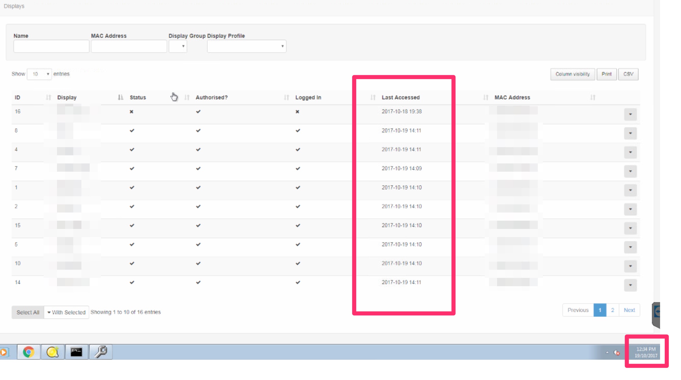 However, the CMS is showing a different time under Displays (see screenshot below).