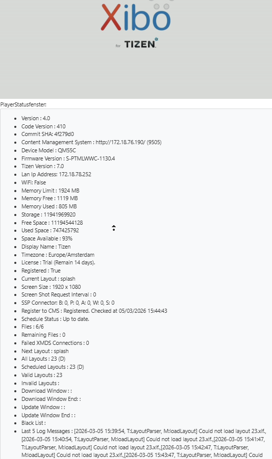 Would you also be willing to test connecting that display to a Xibo cloud trial instance, so we can narrow down if the issue is related to your CMS or the player?
