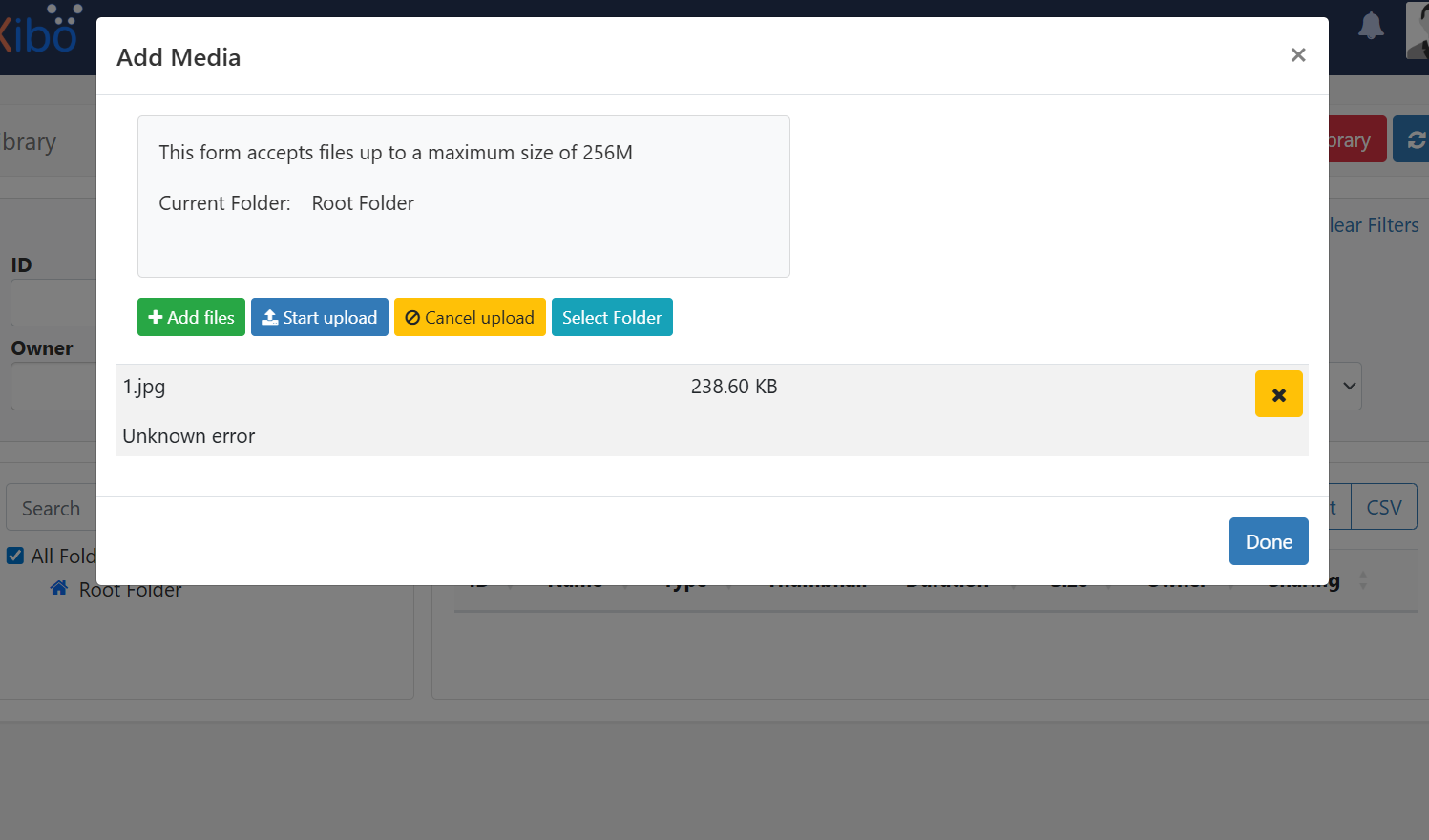 Cant seems to upload media files onto the library folder. Originally thought it was the permission, so changed a new library folder and its the same problem.