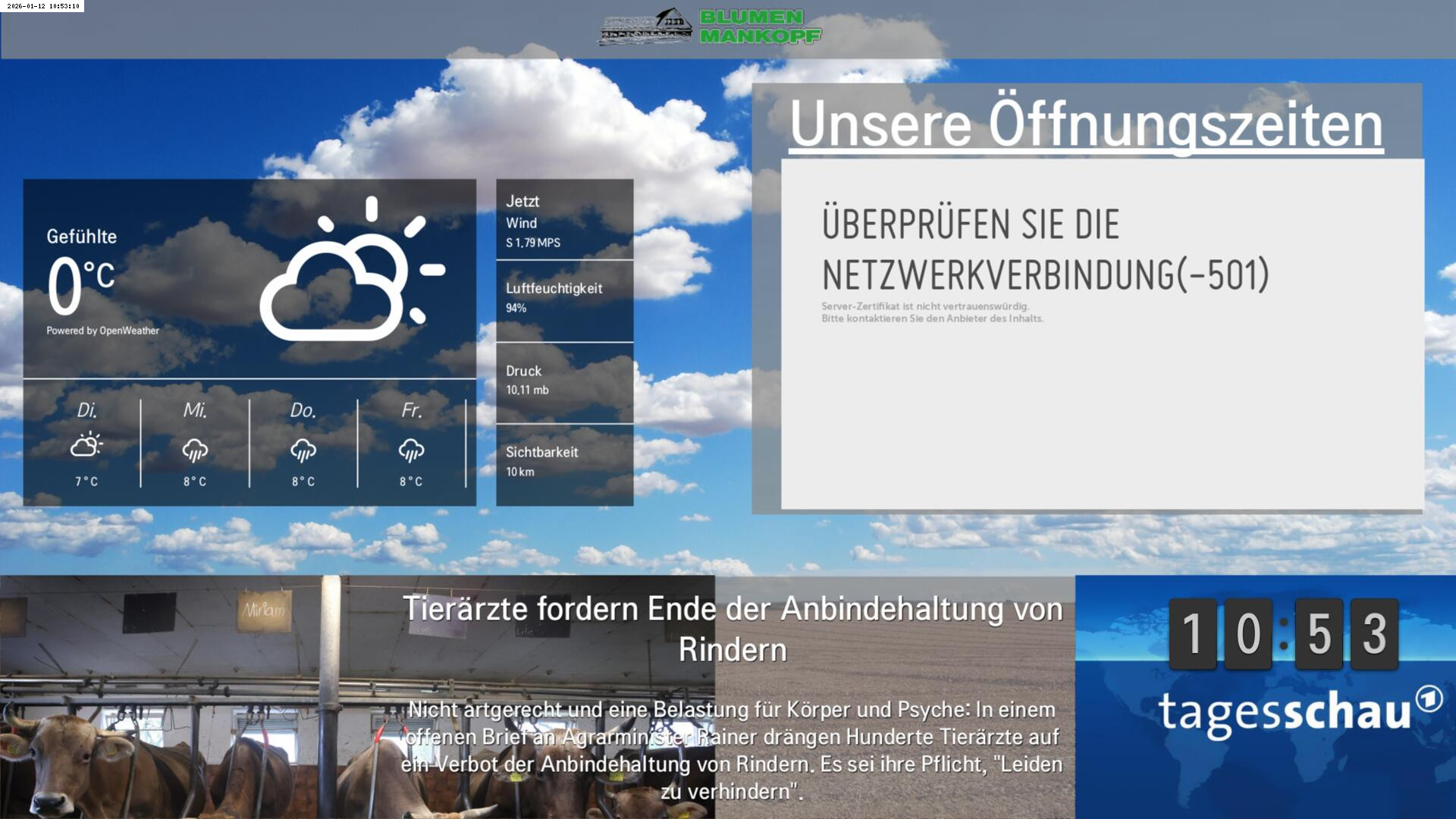 You Are Right, it is the older one sorry! Yeah it work before… could let you the url https://www.blumen-mankopf.de/open/ and it work before… dont know what Happens! The Display is normale Registerd! Could reache the Internet! But the Website and Date, Both Are missing!